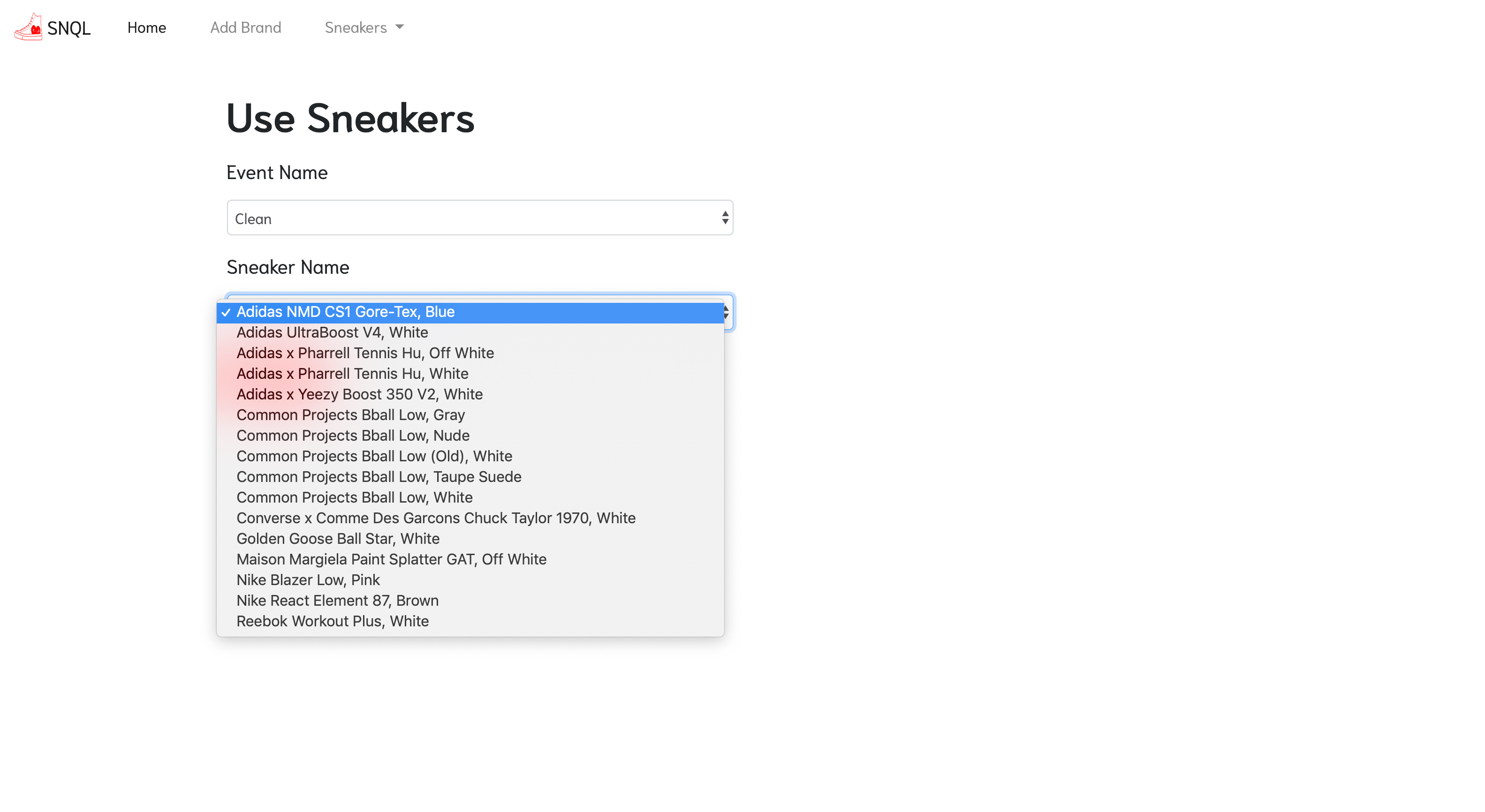 I wanted to use a SelectField to let me choose a pair of sneakers that I wanted to wear, and that required listing all of the available sneakers from the sneakers table in the database. That wasn’t too hard (I used that list_available_sneakers function I mentioned), but I kept running into the same problem: I needed to reload the entire server to get those choices to update once I added a new sneaker. That was no good.